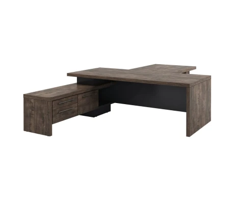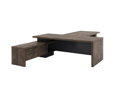 Я очень долго выбирала подходящий стол для работы. Эта модель мне понравилась сразу. Очень интересная форма, есть дополнительное место в виде тумбы. Выбирала между двумя цветами: Мерано-береза и Мерано-черно-коричневый. Выбрала в итоге второй вариант. Очень круто смотрится, безумно стильно и дорого. Спасибо вам, найс-офис!